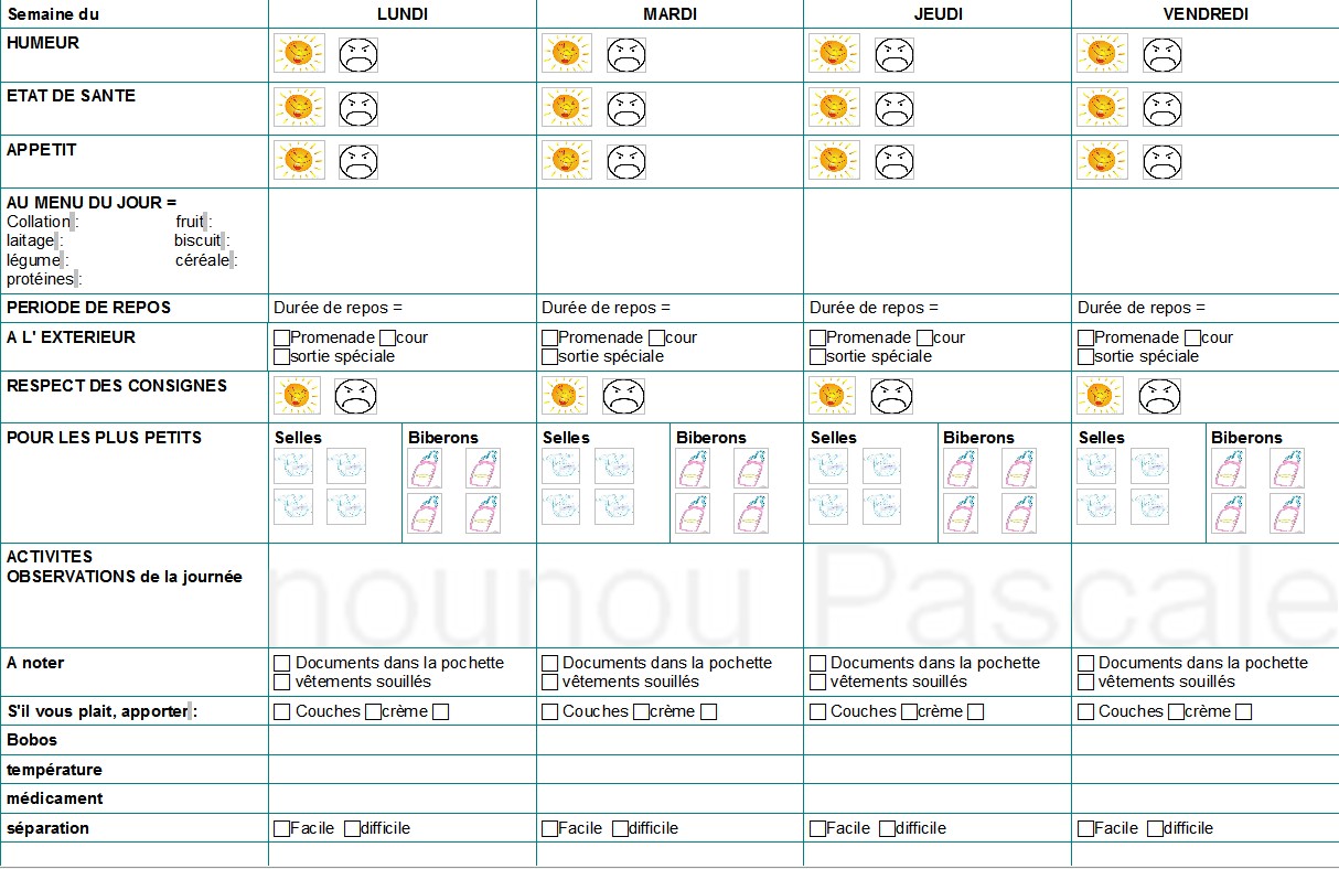 Nounou Pascale Ma Fiche De Rapport Des Journees Chez Nounou Pour Les Parents 13